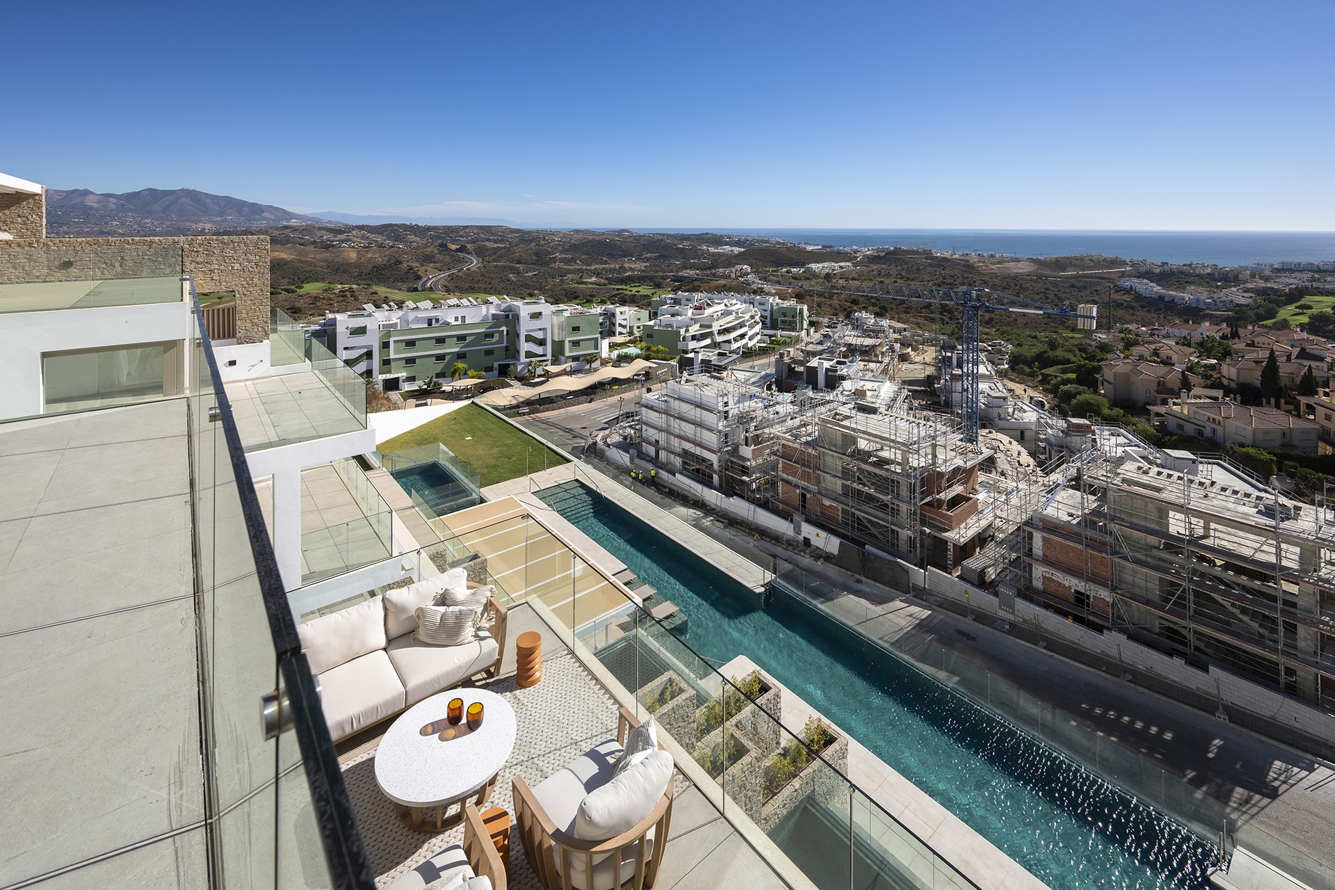 It’s a boutique project with only sixteen units, designed to offer an intimate and relaxed residential environment. Located just a few minutes from the beaches of La Cala, its restaurants, cafรฉs, supermarkets and the charming town centre, this property combines tranquillity with proximity to all essential services.