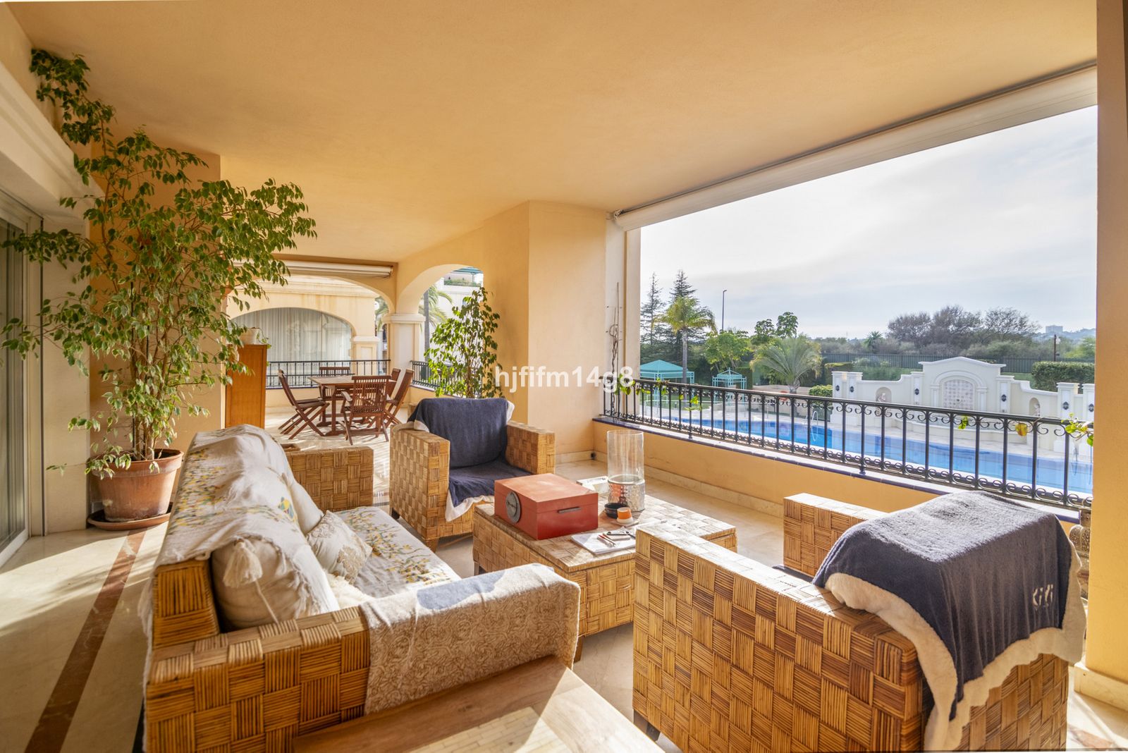 Inside you have a spacious living room, well maintained kitchen, 3 good sized bedrooms and a fantastic terrace. The terrace is covered and overlooks the swimming pool area.