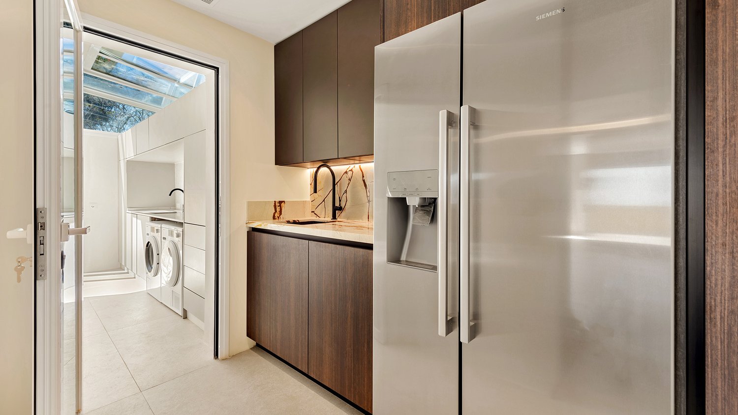 The contemporary kitchen is a true chef’s delight — fully equipped with premium German appliances, stylish cabinetry, and an intuitive layout that flows seamlessly into the dining and living areas. Custom-made wardrobes, high-end finishes, and thoughtful details throughout the home ensure that every aspect speaks of quality and elegance.